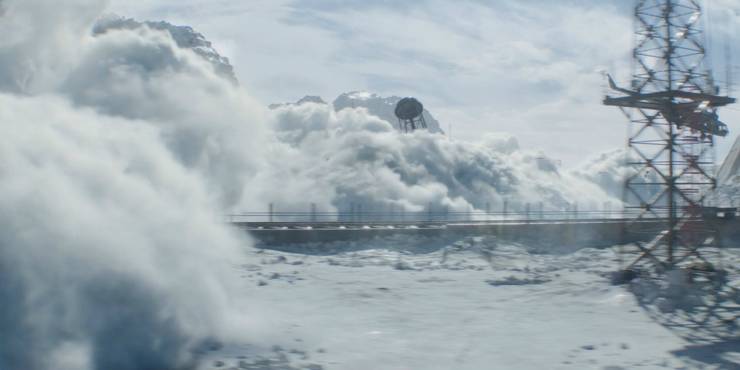 Trở lại với cơ sở huấn luyện ở trên, trận lở tuyết đã nuốt chửng nó, trong khi Natasha Romanoff tiếp tục bám chiếc trực thăng và bay khỏi hiện trường. Đây có thể chính là chuỗi cảnh hành động gay cấn nhất trong phim, vì ngay trong trailer đã như vậy rồi. Nhưng có lí do để cho rằng nhiệm vụ chống lại Red Room của Natasha chưa thể kết thúc ở đây. Khá thú vị khi thấy đám lính vẫn tập trung vào Black Widow, dẫu cái chết đang cận kề.