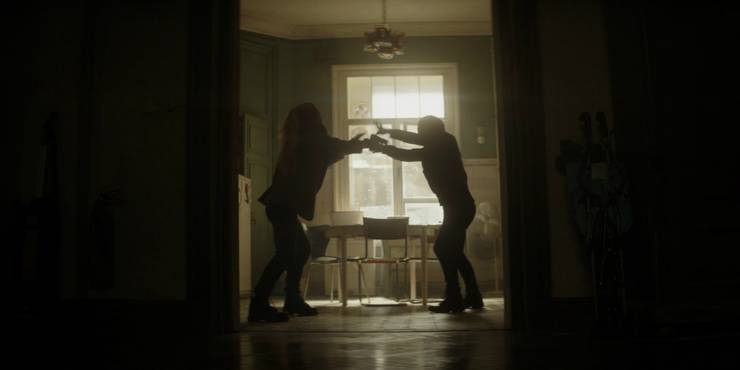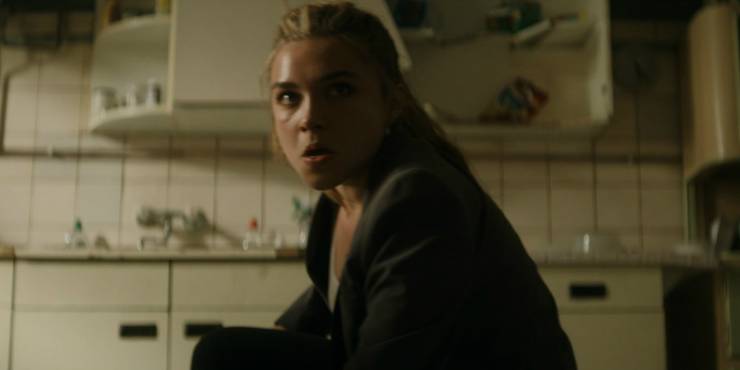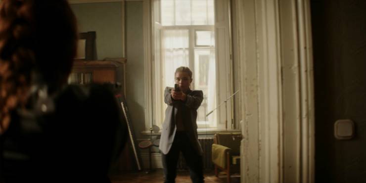 Việc giới thiệu Yelena Belova ở đây mang phong cách tương tự như series điệp viên nổi tiếng và được đánh giá cao ‘Killing Eve’, với nhân vật chính là sát thủ máu lạnh Villanelle do Jolie Comer thủ vai. Natasha và Yelena đọ sức trong một cuộc đụng độ ngắn, một cách hoàn hảo để thể hiện rằng hai người họ ngang sức ngang tài. Phong cách chiến đấu y hệt nhau, cho thấy họ xuất thân từ cùng một lò luyện và học được những kĩ năng như nhau.